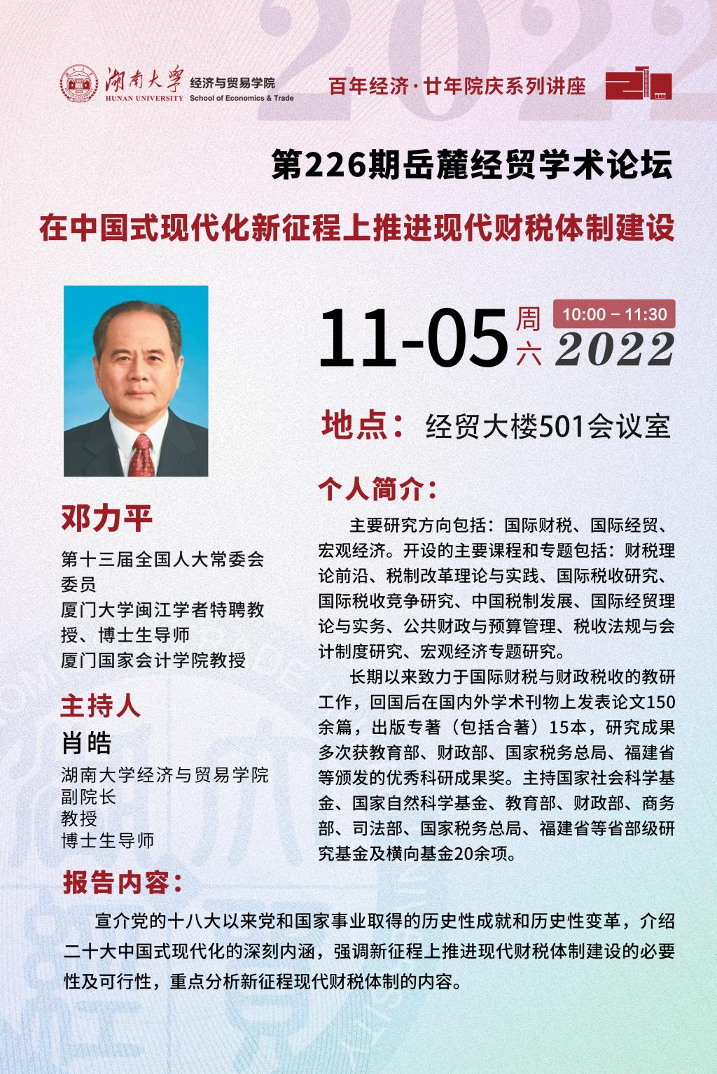 邓力平:在中国式现代化新征程上推进现代财税体制建设
