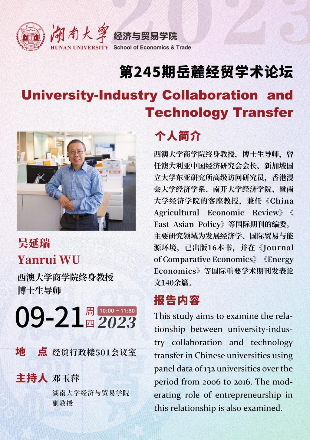 吴延瑞:University-Industry Collaboration and Technology Transfer