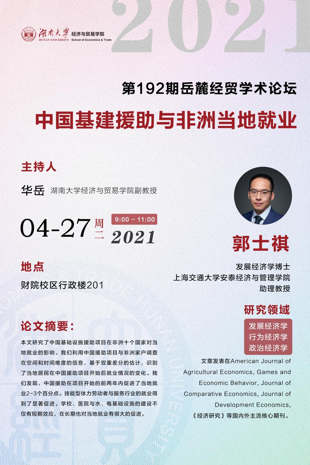 主讲人:郭士祺,发展经济学博士,上海交通大学安泰经济与管理百家乐官方网站