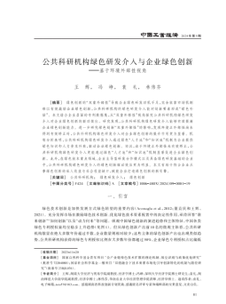 文章从“双重外部性”的视角考察公共科研机构绿色研发介入对企业绿色创新的驱动效应,并从绿色“人才池”和“知识池” 维度研究影响机制。同时,还基于不同的合作主导模式、绿色技术研发领域及企业绿色研发基础,探讨公共科研机构介入企业绿色研发对企业绿色创新的差异性影响。研究发现:第一,公共科研机构绿色研发介入对企业绿色创新水平具有显著正向影响。且对面临环境外部性大的企业,公共科研机构绿色研发介入对绿色创新的提升效应更显著,而知识溢出外部性并未对二者关系产生显著影响。验证了环境正外部性是驱动公共科研机构绿色研发介入,进而影响企业绿色创新的关键因素。第二,机制分析表明,公共科研机构绿色研发介入能通过绿色“人才池”和“知识池”机制,促进企业绿色创新。上述两类机制均对面临环境外部性大的企业更显著,再次验证环境正外部性的关键驱动作用。第三,异质性分析发现,在绿色技术重点领域、企业主导型研发合作模式以及具备绿色创新基础的企业中,公共科研机构绿色研发介入的绿色创新驱动效应更为明显。此外,进一步分析表明,公共科研机构绿色研发介入能提升企业绿色创新质量,拓宽绿色创新边界,且绿色研发合作强度越高,绿色创新驱动效应越强。