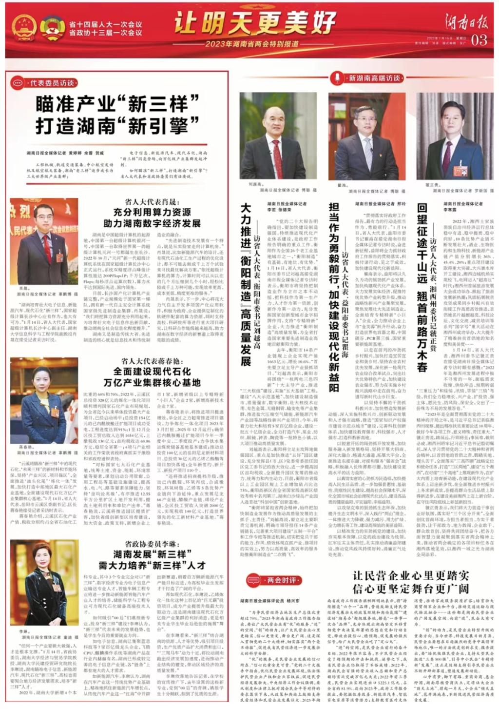 在李琳看来,“新三样”结合湖南的资源、人才等优势,吸引项目投资,生产优质产品扩大消费和出口,“‘三驾马车’动力十足,将拉动湖南跑出经济发展加速度,进而推动产业结构的嬗变,带动区域经济的高质量发展。”