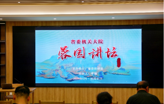 本次省委机关大院“蓉园讲坛”是由省委政研室主办,省委政研室副主任、机关党委书记李先吉出席。省委办公厅、省委宣传部、省直机关工委等单位分管负责人近60余人参加。湖南大学政策研究中心主任成希一同参加讲座。