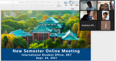 国际项目的基本情况,本学期的课程授课模块和授课形式,疫情期间国家留学基金委对公费留学生的奖学金发放政策,论文开题及答辩等相关进度安排进行说明。之后,博士后Hmeidatt Abdeljelil就其在中国的硕士、博士和博士后学习与研究经历从课程学习、学术研究、文化与语言适应、与导师的互动、湖大的校园生活等各个方面进行了经验分享。最后的答疑环节,同学们就导师选择、论文选题、课程学分、奖学金等问题进行自由交流。会议由龚俣一老师主持。