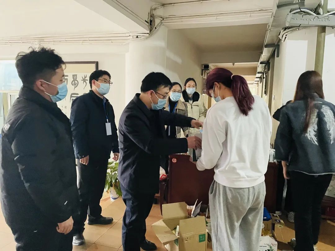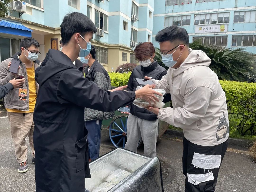 院长侯俊军老师、党委书记祝树金老师也纷纷加入送餐队列中,主动担任楼栋志愿者,每天关心同学们是否完成核酸检测、是否存在异常情况。