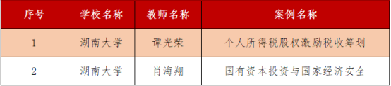 谭光荣老师《个人所得税股权激励税收筹划》案例、肖海翔老师《国有资本投资与国家经济安全》案例均获二等奖。这是近年来百家乐官方网站
