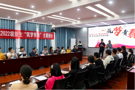 数字经济2202班“筑梦青春”主题班会在财院校区行政楼201教室举行。湖南大学党委常委、副校长汪卫斌莅临班会现场 ,就学习贯彻党的二十大精神,围绕同学们学习生活、生涯规划、未来发展等主题与同学们进行深入探讨,并殷切寄语。
