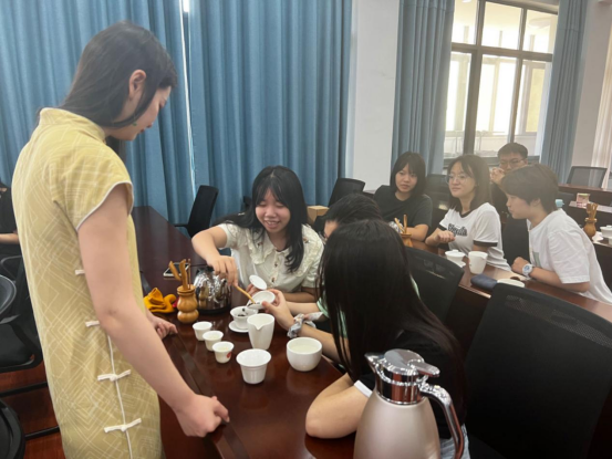 专业茶艺师开展讲座,详细讲解了茶艺文化的基本知识,带领同学们亲身体会选茶、泡茶、敬茶、品茶全过程。同学们沉醉在自己泡制的茶香中,感慨于传统茶文化的浓淡如练和变化多样。