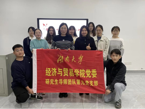 邓玉萍老师作为第九党支部指导老师,注重党建引领聚合力,支部共建促发展,重视支部党建工作,围绕党的基本理论、社会热点和学生关心的现实问题,组织了一系列有针对性的主题活动,包括主讲题为《深入学习贯彻党的二十大精神——深刻理解新时代十年伟大变革》等系列党课3次。创新师生支部共建形式,组织教工国贸党支部和学生党支部联合开展党的二十大精神主题党日学习活动,搭建师生党建沟通桥梁,提升理论学习成效,充分实现教师党支部与学生党支部之间取长补短、互相学习、共同探讨、共同进步。