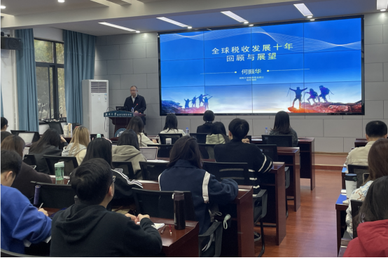 税务硕士校外导师何振华为税务硕士开展《国际税收》课程授课,授课专题为《全球税收发展十年回顾与展望》。湘江新区税务局朱文敏处长、本课程负责老师肖海翔等及全体2023级税务专业硕士研究生参加。