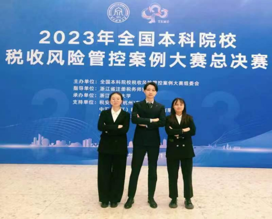 财政系唐明老师和行业导师梁晓东老师共同指导,2023级税务硕士梁栩、黄惠芝、李嘉欣组成。