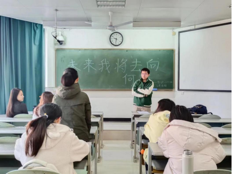 组织主题班会,邀请专业教师、班主任、高年级学生进行释疑解惑,主题涵盖保研、考研、留学、就业等方面。各班鼓励同学分享焦虑,“抱团取暖”,做好自我分析,找出比较优势,分享职业预期,绘制属于自己的美好蓝图。