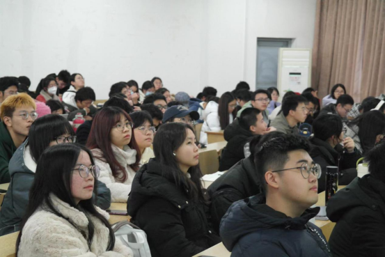 创新创业情况”“双创育人的成效与成果”等方面进行了讲解,指出创新创业教育是时代的需要,培养创新创业能力具有重要意义。李曼老师结合本科生四年生涯发展,从不同维度介绍了参与创新创业的途径,希望同学们开拓思维、积极参与,敢于创新、勇于实践,培养创新创业精神,做新时代经世致用领军人才。