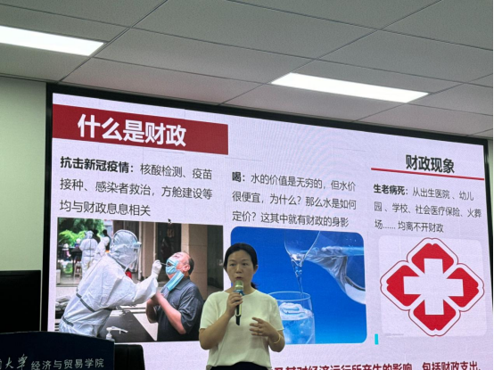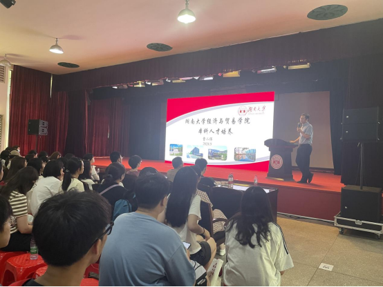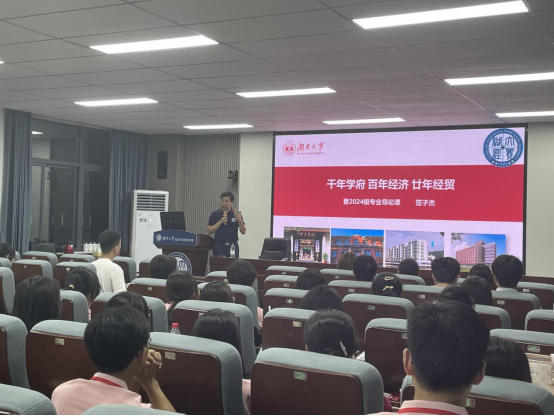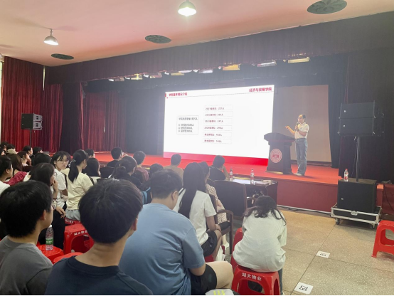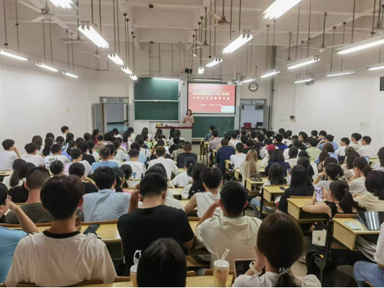 的学生工作概况、学生培养体系、学生成长平台等方面深入浅出的进行了分享,她提出,快速适应大学生活要从了解自己,明确目标;了解专业,主动融入和调整;自律自制,做好时间管理,期待同学们都能全面发展,成长成为德才兼备的领军人才。