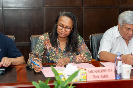 此次框架性协议的签署,由湖南大学中非文化交流中心执行主任、中非经贸合作研究院执行秘书长肖皓与马达加斯加教育部代表共同完成,马达加斯加教育部长SAHONDRARIMALALA Marie Michelle与湖南大学副校长姜潮共同见证了这一时刻。