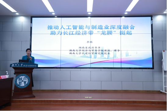 、湖南大学民建经贸研究院承办,湖南大学数字经济系、中非经贸合作研究院、中国(湖南)自由贸易试验区创新发展研究院协办的湖南大学民建经贸研究院第四届论坛在长沙举行。论坛主题为“促进人工智能和实体经济深度融合”。