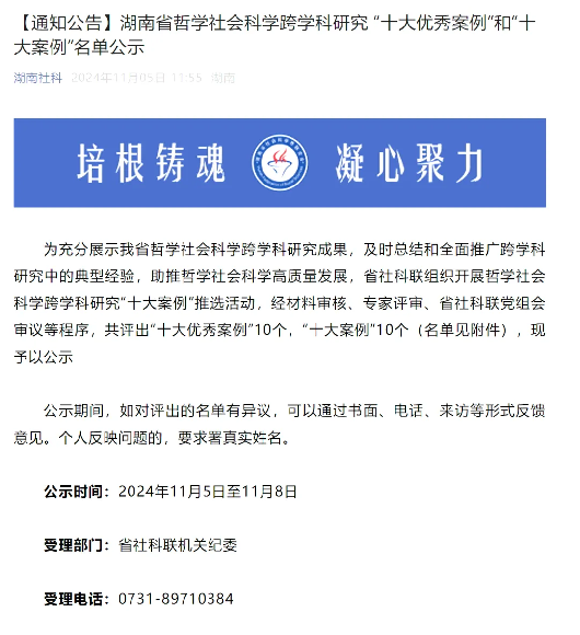 近日,湖南省社会科学界联合会公示了哲学社会科学跨学科研究“十大优秀案例”和“十大案例”名单。百家乐官方网站