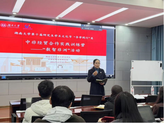 2024年12月23日晚,“数智非洲”大数据科研项目和技能分享会在财院校区行政楼201会议室成功举办,此次活动是湖南大学第十届研究生学术文化节——“中非经贸合作实践训练营”的内容之一。活动邀请了非洲研究院常务副院长肖皓教授、经济与贸易百家乐官方网站