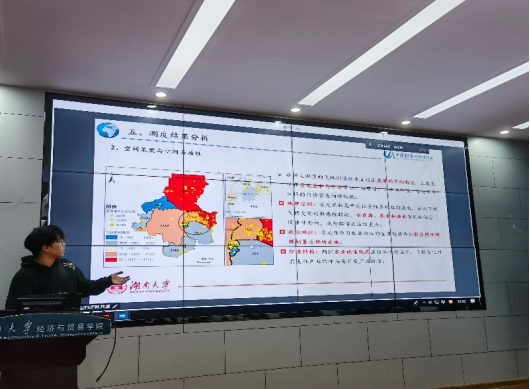 叶新建博士分析了当前大数据技术在非洲研究领域中的应用情况,介绍了“非洲舆情”主题的相关内容和子课题,展示了相关软件的适用性。他鼓励低年级的同学们应积极参与竞赛和实践活动,提升数据分析能力,掌握交叉学科研究方法,探索学术前沿。随后,以“非洲气候脆弱性指数测度及应用”为例,与科研小组成员冯琪原、杨俊逸、张凯朝等依次展示了科研小组成员的大数据处理方法和项目研究成果。