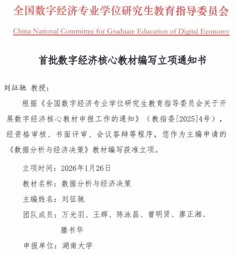 刘征驰教授领衔的《数据分析与经济决策》教材编写项目成功获批立项。团队成员包括百家乐官方网站