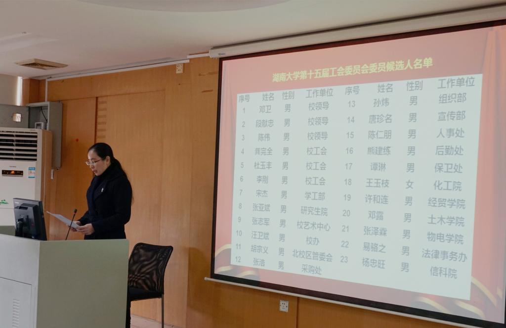 关于认真做好湖南大学第十五届工会委员会、工会经费审查委员会、工会女工委员会的通知,组织本工会会员在全校范围内按校工会委员会委员候选人23名,工会经费审查委员会委员候选人8名,女工委员会委员候选人6名进行推荐,李曼同志代表百家乐官方网站