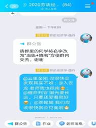 院的老师共同抗“疫”,开展线上课堂,不忘深入开展教育教学改革,将课程思政落到实处。曲丹老师教学劳动经济学以来坚持以思政教育为根本,除了要求同学们除了掌握基本的理论知识外,更是引导学生学会发现问题以及分析问题和解决问题的方法,培养和提升科学的经济学思维,更深层次地解读国家相关政策。