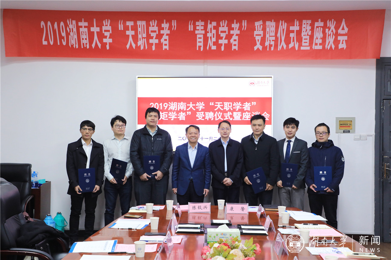 教授陈毅兴、张超受聘“青矩学者”。段献忠和陈永宏共同为“天职学者”“青矩学者”颁发聘书。