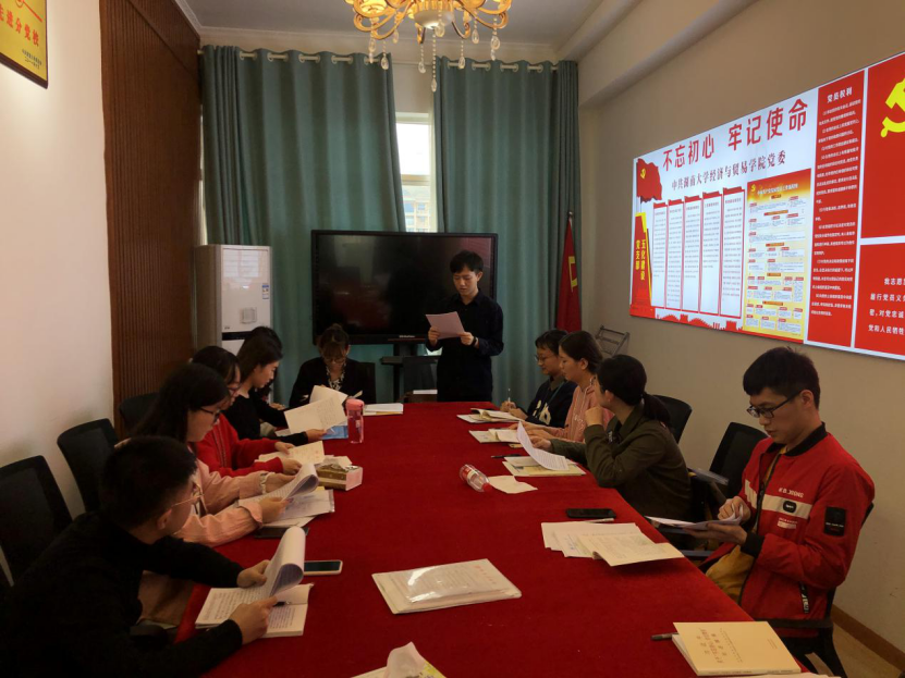 研究生发展对象以个人自学和集中学习研讨方式相结合,于10月14日和20日分别就《中国共产党章程》、《习近平关于“不忘初心、牢记使命”论述摘编》进行专题学习。在全面自学的基础上,集中学习前就每位发展对象困惑的问题制订研讨问题清单,集中研讨时安排1-2位发展对象领学,有的放矢、学习深入,实现每位发展对象参与学习、主动思考、理论知识入脑入心。