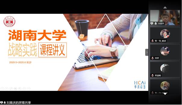 的本科生和硕士生。疫情期间,刘章庆博士采取“云授课+分组行动教学”的授课方式将传统教学与企业实践紧密结合,以他在华为丰富的战略设计与执行经验为同学们细致介绍了BLM战略领导模型的主要内容。为了让学生更好的理解教学内容,刘章庆博士将学员精心分成四个小组,在企业导师“一对一”全程指导下进行模拟实战。通过实战演练与互动交流,学员们纷纷表示对教学内容有了更加深刻的理解,并十分期待对后续课程的深入学习,希望能够通过“战”与“学”相结合,将理论更好地运用于实践。
