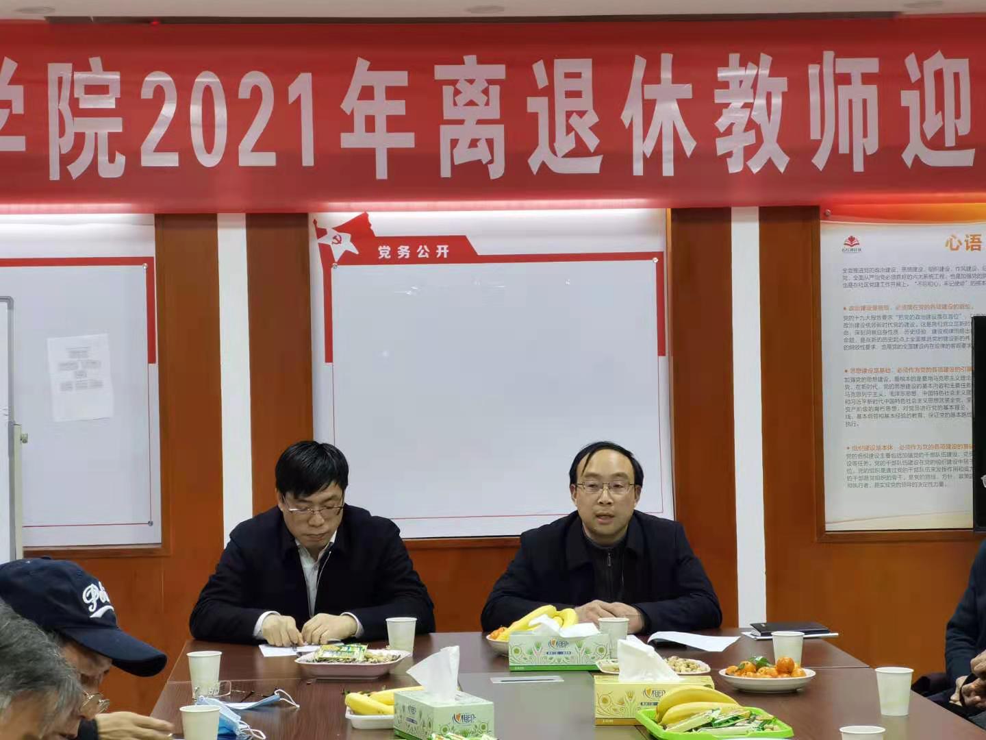院长侯俊军教授,党委书记祝树金教授,副处级组织员刘周平同志,院离退休工作专干汪新华老师,院办主任肖力老师,院工会福利委员张意湘老师参加会议座谈,大家欢聚一堂,喜迎2021年新春的到来。