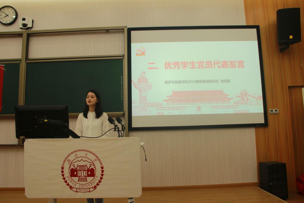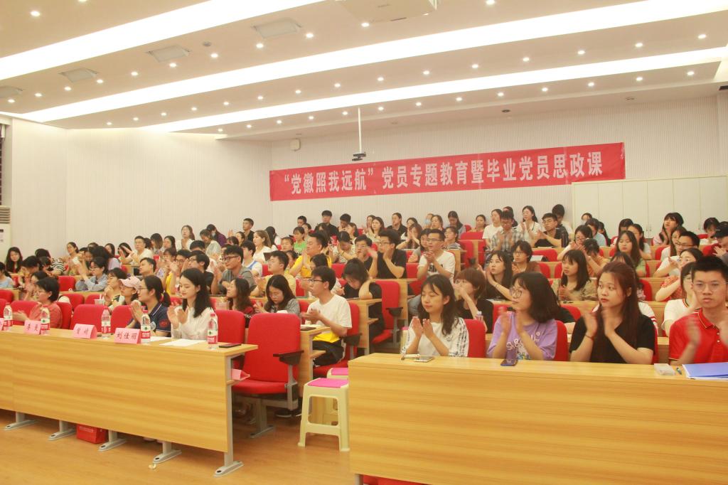 党委书记祝树金老师为毕业生党员上党课;二是新发展党员入党宣誓和毕业生党员重温入党誓词;三是优秀党员代表刘佳丽发言;四是硕士研究生辅导员曾婧老师进行党组织关系转接培训。