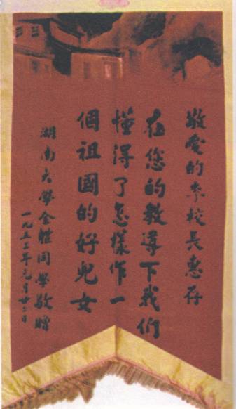 (图10:李达离开湖南大学时,全体同学赠送的锦旗)