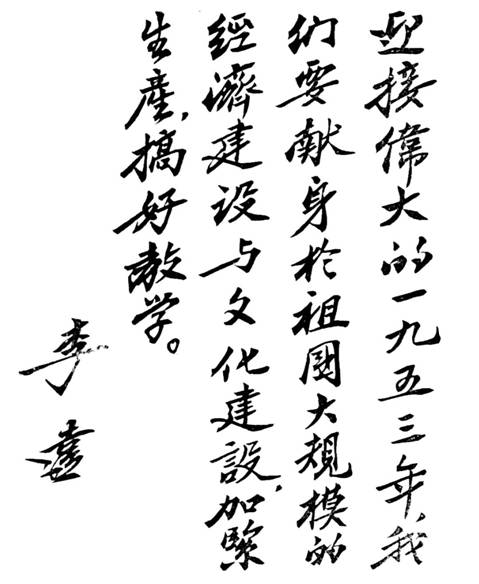 (图4:李达1953年元旦为《人民湖大》校报题词)