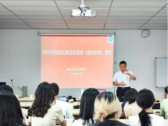 外聘兼职教授梁红星为2024级税务硕士讲授《国际税收》课程的开学第一课,授课专题为《中国双边税收协定实际适用分析》。本课程负责老师肖海翔、法百家乐官方网站
