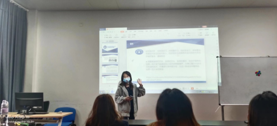 国贸2001班团支书李莎莎带领支部成员学习讲话精神。