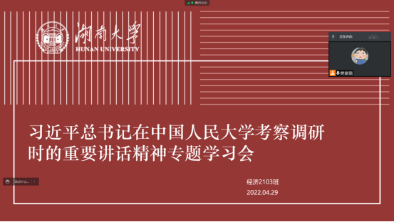 经济2103班团支部开展线上专题学习。