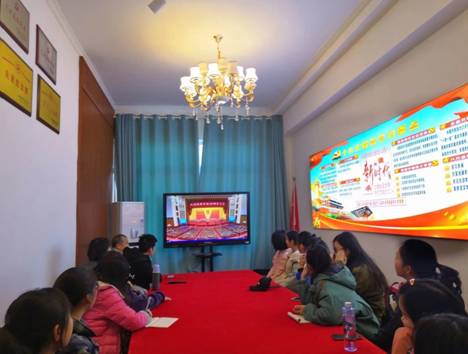 行政支部成员在行政楼617观看纪念改革开放四十周年大会现场直播。