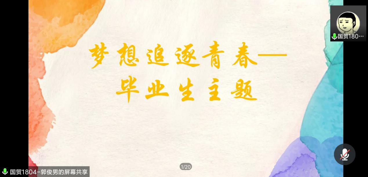 国贸1701班回顾从入校到毕业的点点滴滴,交流个人成长历程中的心得感悟,表达自己内心对老师和同学的情感,互赠毕业寄语,并立志如何放飞梦想、追逐美好的未来。