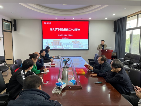 教工经济党支部与研究生导师团队第三党支部联合开展 “学习党的二十大,奋进时代新征程”主题党日活动,深入学习贯彻党的二十大精神。