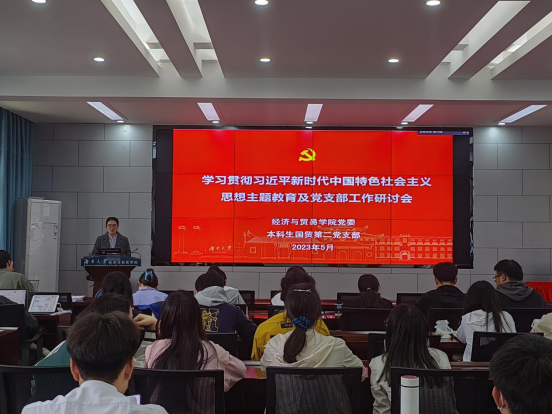为进一步深入开展学习贯彻习近平新时代中国特色社会主义思想主题教育,2023年5月11日下午,本科生国贸第二党支部在行政楼201开展学习贯彻习近平新时代中国特色社会主义思想主题教育及党支部工作研讨会。会议党支部书记曾婧同志主持,全体党员参加。