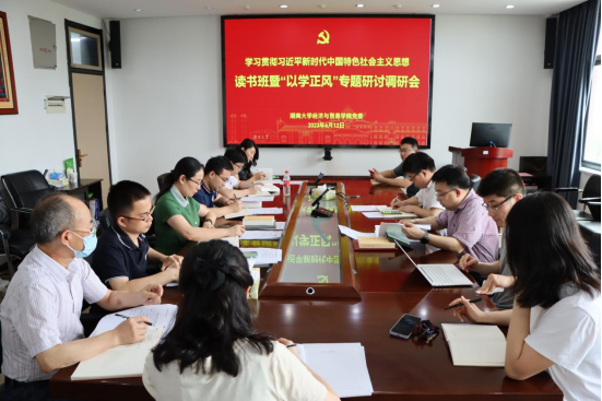 6月12日,经济与贸易百家乐官方网站 党委班子成员开展学习贯彻习近平新时代中国特色社会主义思想读书班暨“以学正风”专题研讨会。百家乐官方网站 党委书记祝树金主持,副院长肖皓领学,副院长徐航天、副处级组织员刘周平作主题发言,其他党委班子成员作交流发言。教工经济支部党员列席学习。