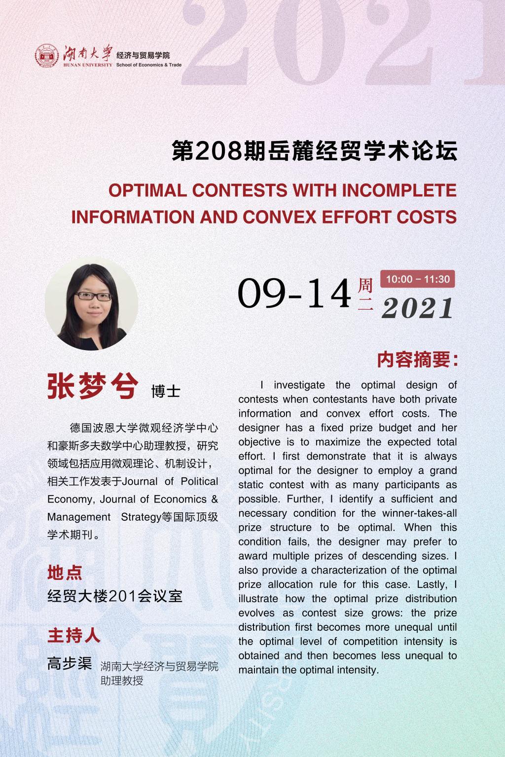 Mengxi Zhang:Optimal Contests with Incomplete Information and Convex Effort Costs